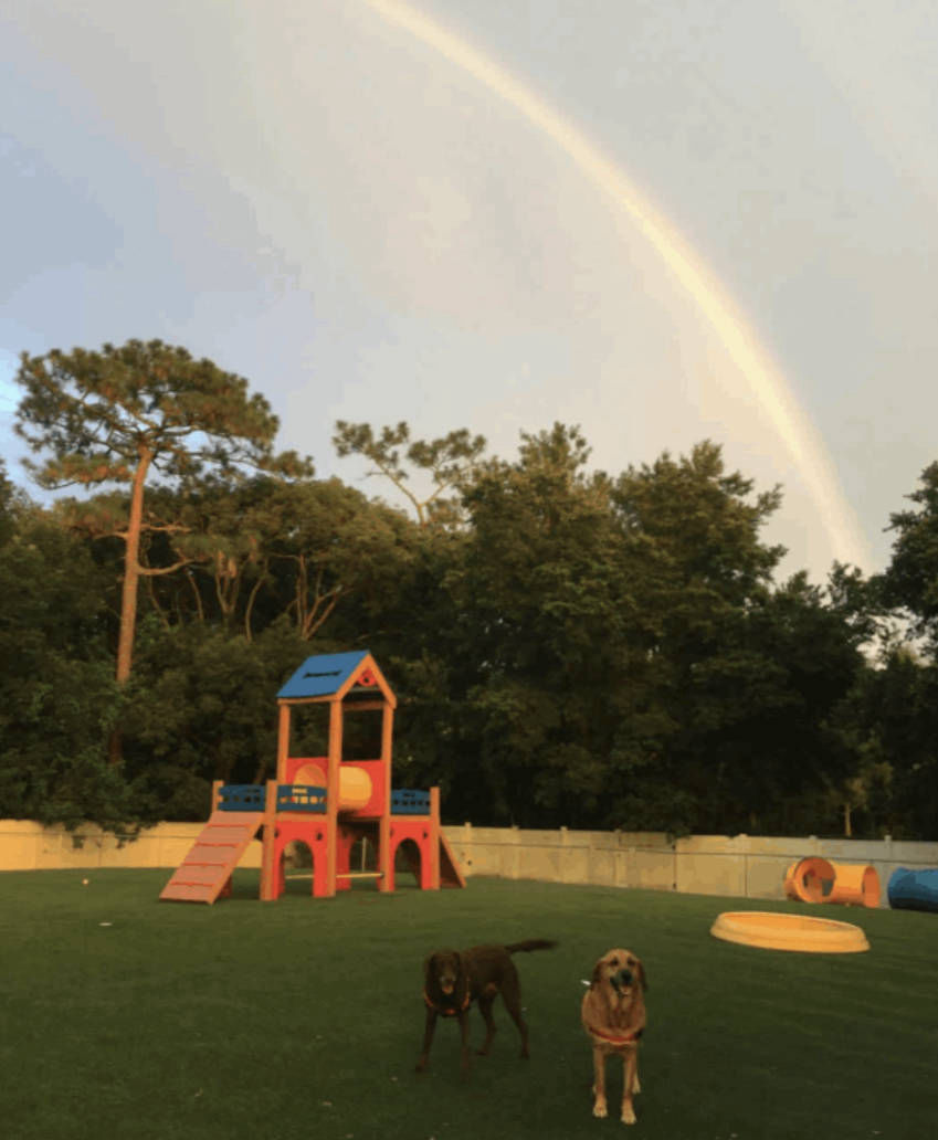 Woof Tang has a beautiful 1/2 turfed yard with a beach style doggy pool. Every playtime is monitored by a pawsome team member!