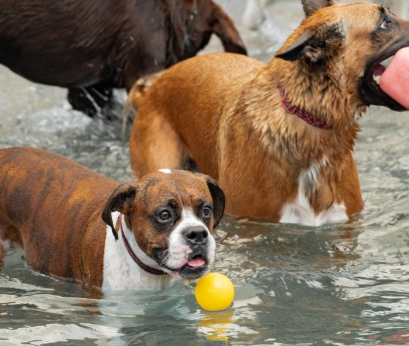 Woof Tang has a beautiful 1/2 turfed yard with a beach style doggy pool. Every playtime is monitored by a pawsome team member!